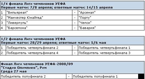 четвертьфинальную пару "Ливерпуль" и "Челси", также ведущих борьбу за титул